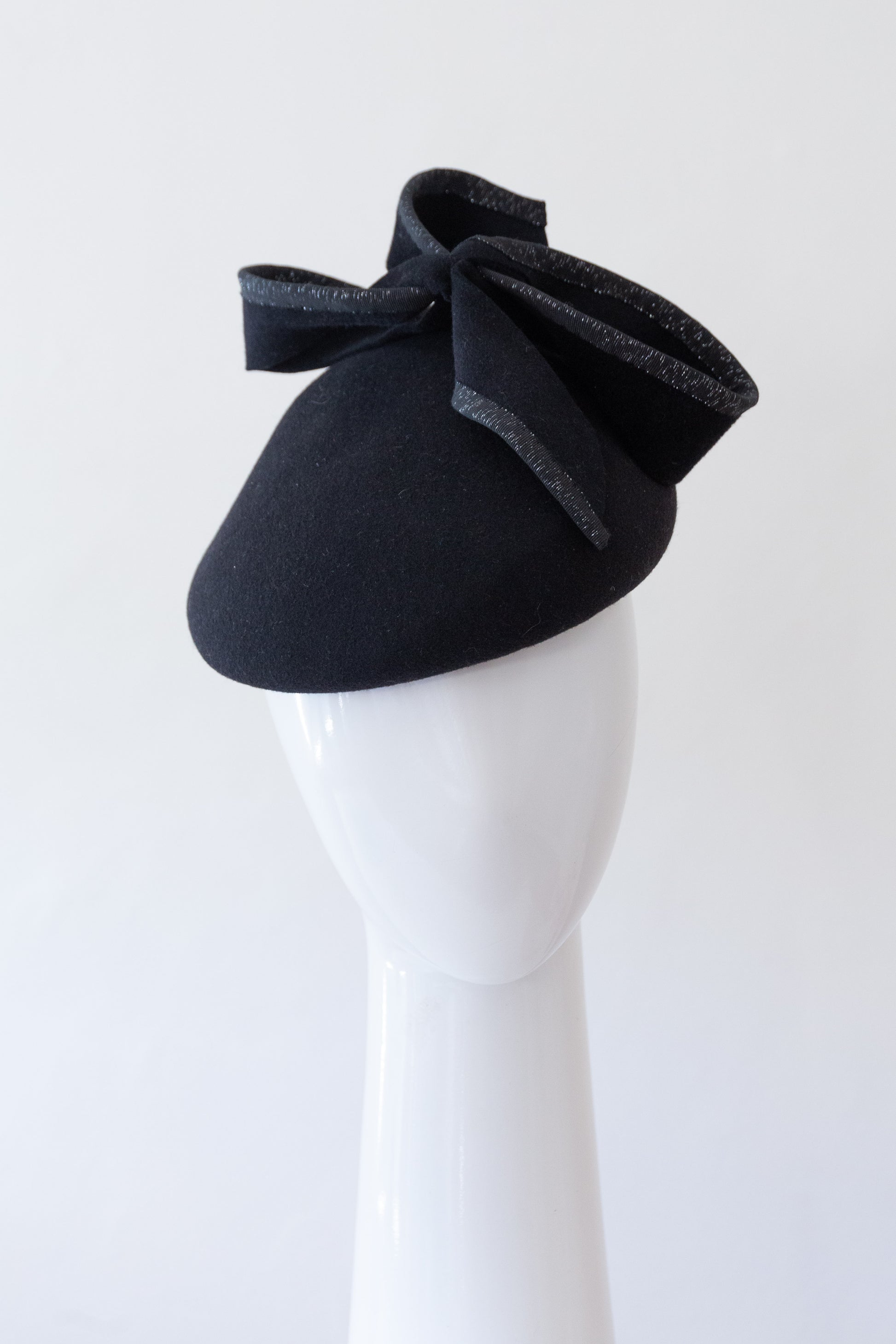 The Black Felt Designer Beret with Bow is a gorgeous twist on the classic beret, a perfect millinery piece for so many outfits.