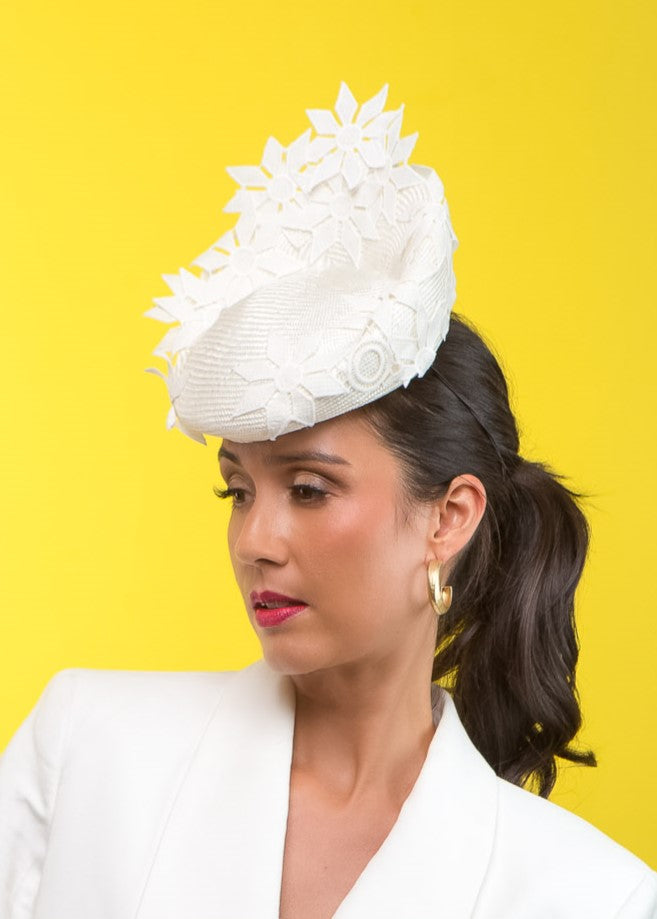 The Lace Trimmed Beret in White features an extremely comfortable beret base which is raised to give height and a gorgeous line; this shape flatters all faces. Trimmed with delicate white lace geometric flowers.
